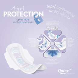 Ontex’s ultra towel 4-in-1 protection is designed for women who want complete control and comfort during their period. This innovative towel combines 4 powerful benefits in one smart solution – so you can move freely and feel secure, no matter what your day brings.